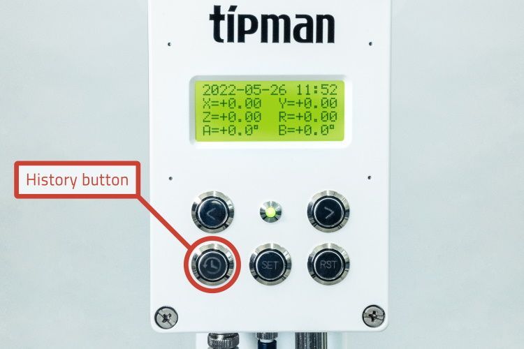 A: Every scan is automatically saved in the onboard memory. Press the "History" button on the controller to review previous alignment measurements.